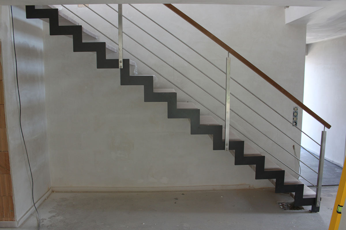 Chaque composant de cet escalier a été fabriqué avec une précision millimétrique au sein de l’atelier KIRNER TREPPENBAU en Allemagne. Nos menuisiers et soudeurs collaborent étroitement pour que les ajustements entre le bois et l’acier laqué soient parfaits. Ce haut niveau de finitions esthétiques et la qualité « Made in Germany » sont la garantie d’un ouvrage robuste, silencieux et durable.