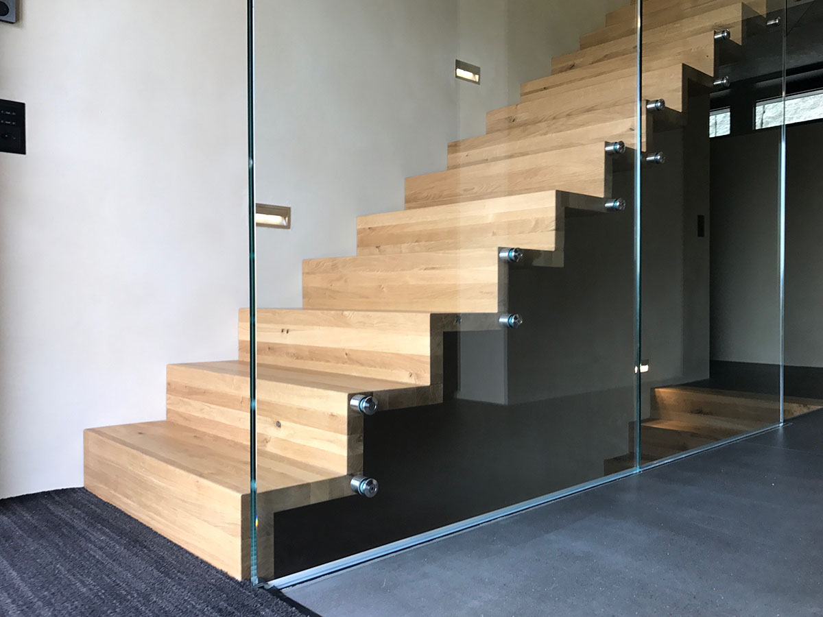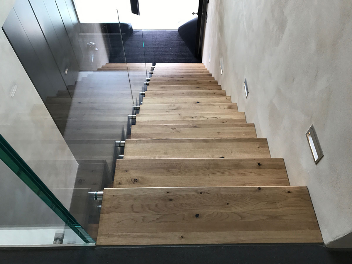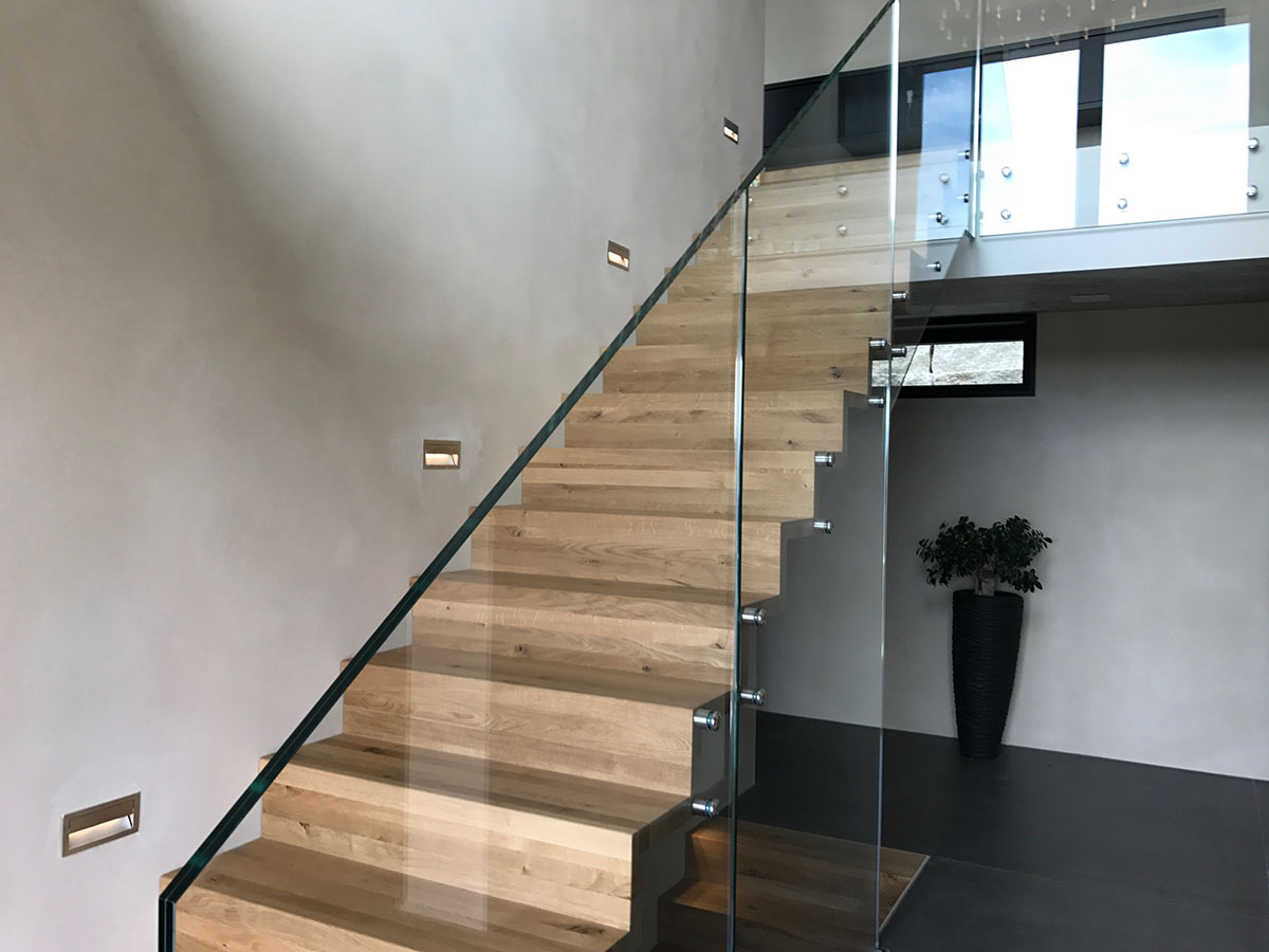 Réalisation à Gundolsheim : l’escalier en chêne massif et garde-corps full verre