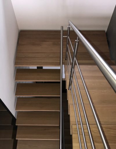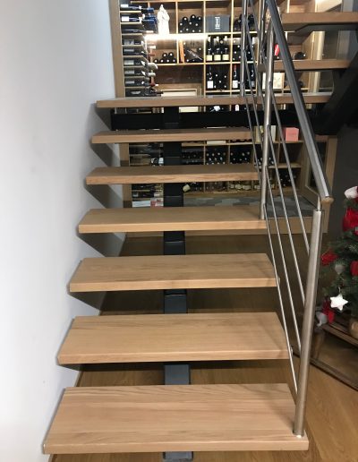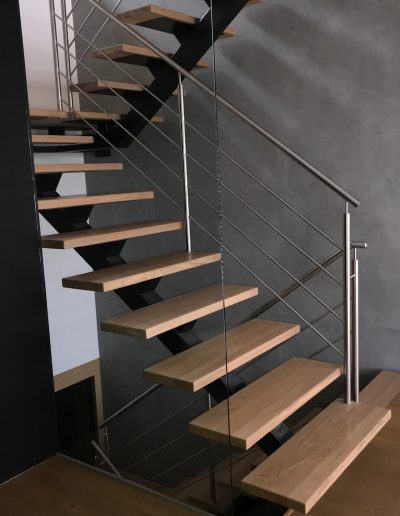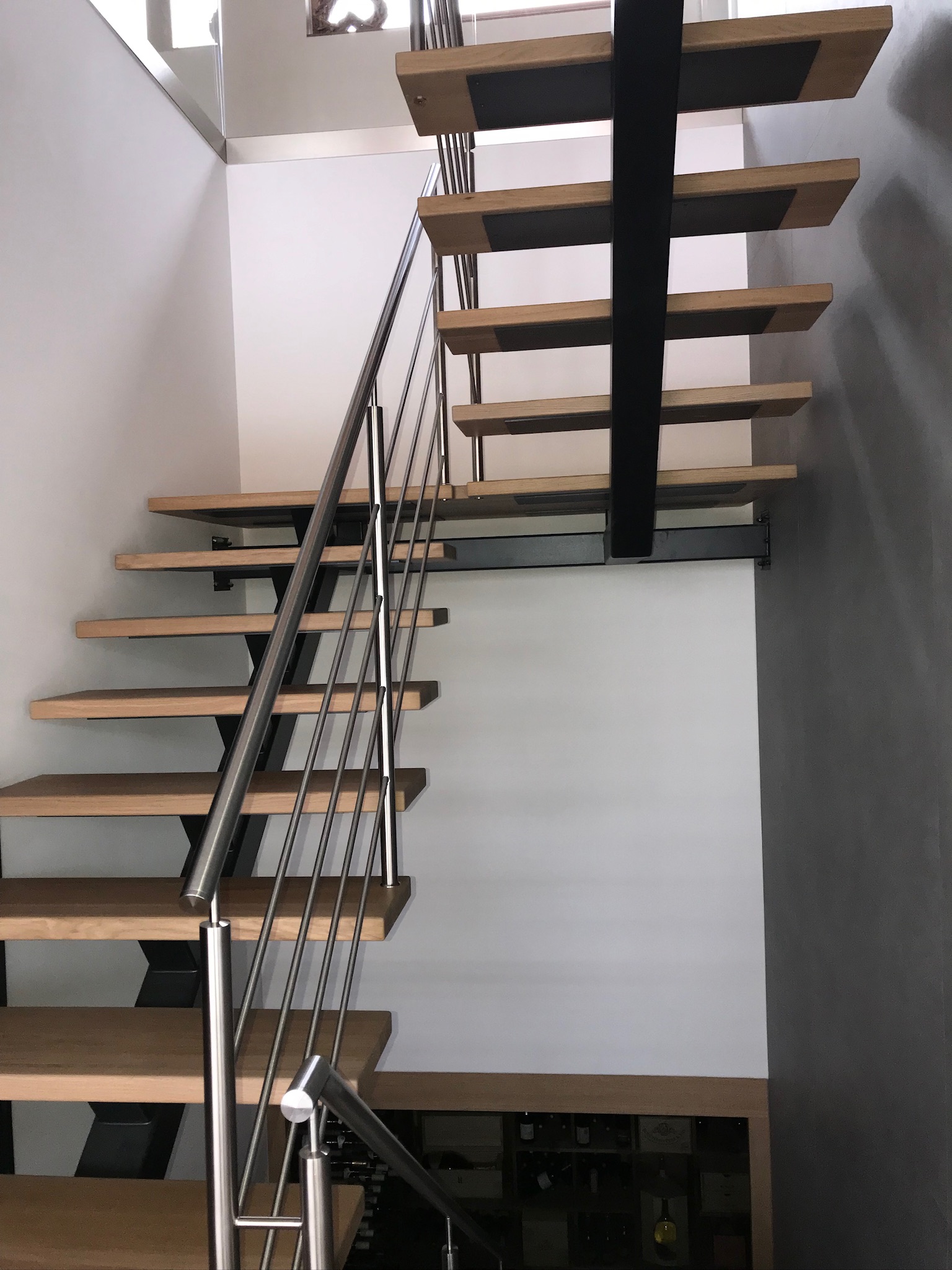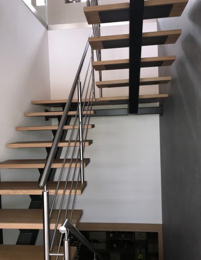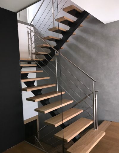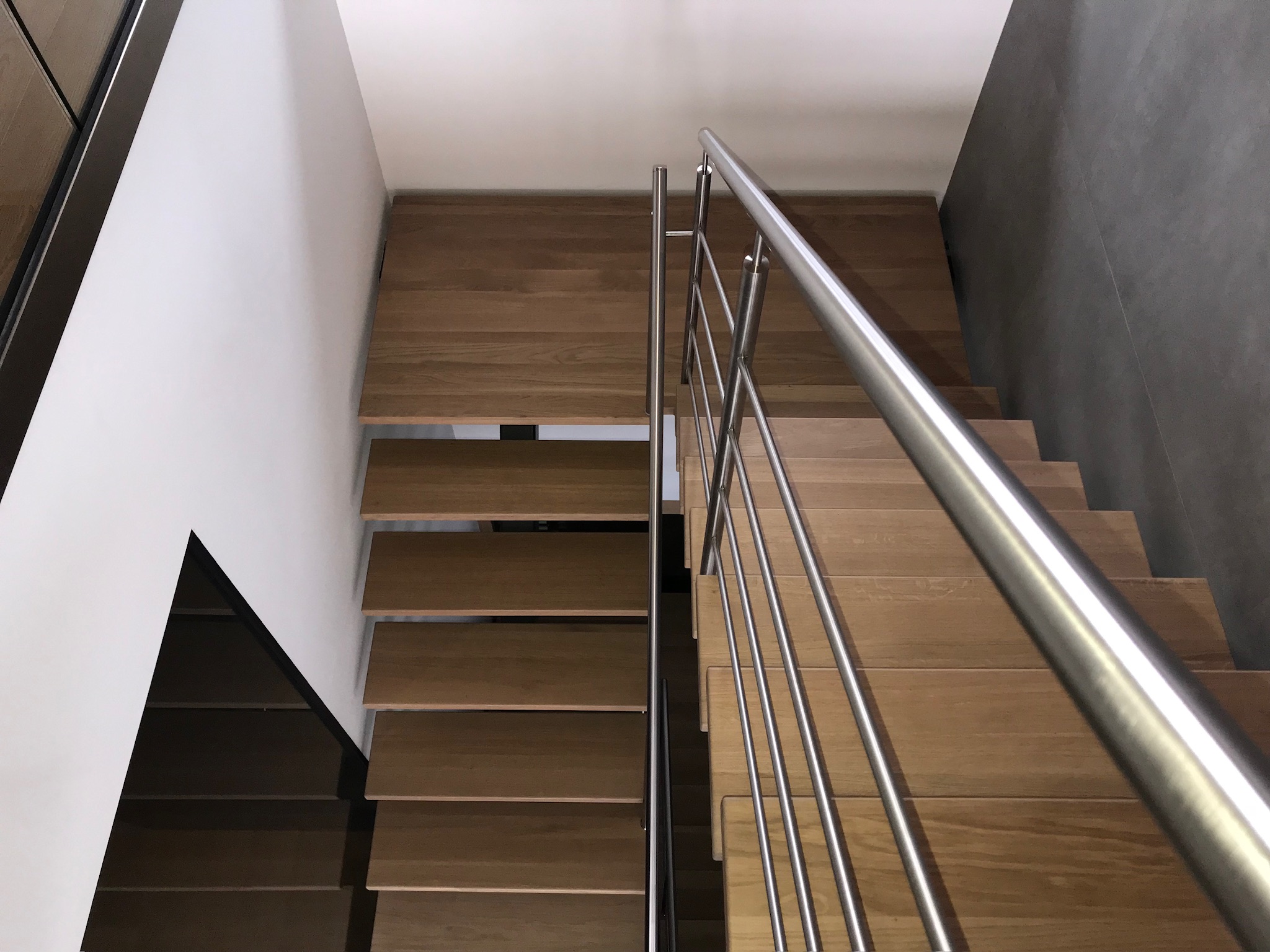 Esthétique : Il apporte une touche contemporaine, contrastant avec la chaleur des marches en bois (essence au choix), créant un élégant escalier bois et métal.
