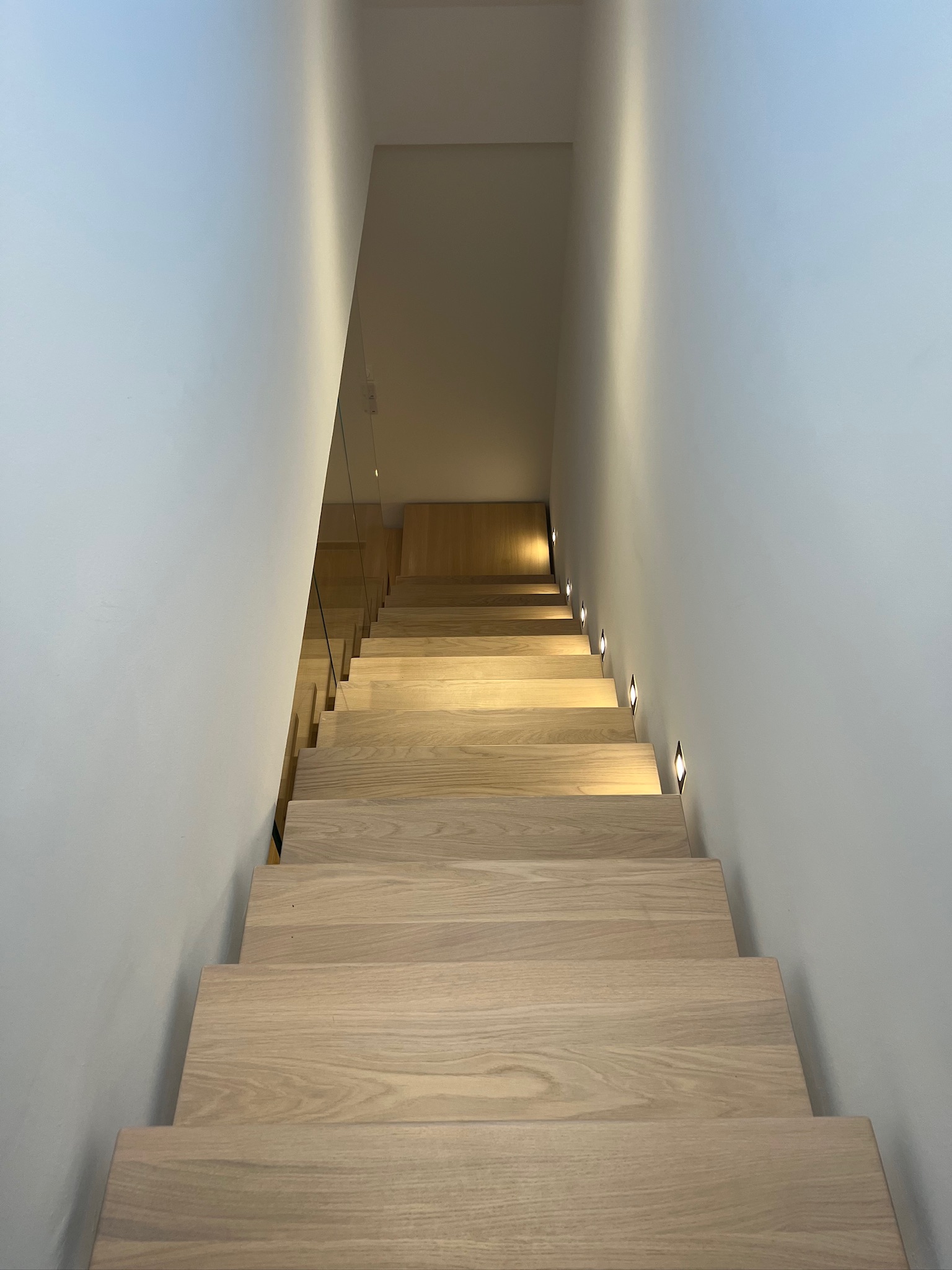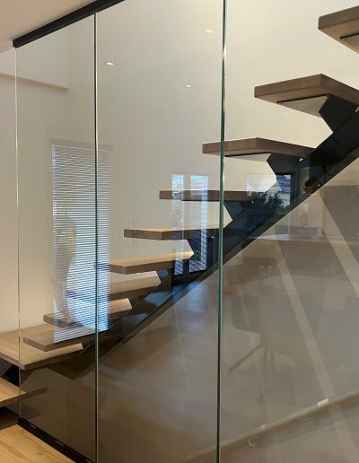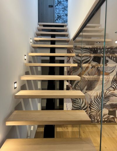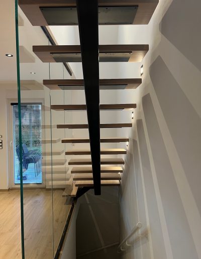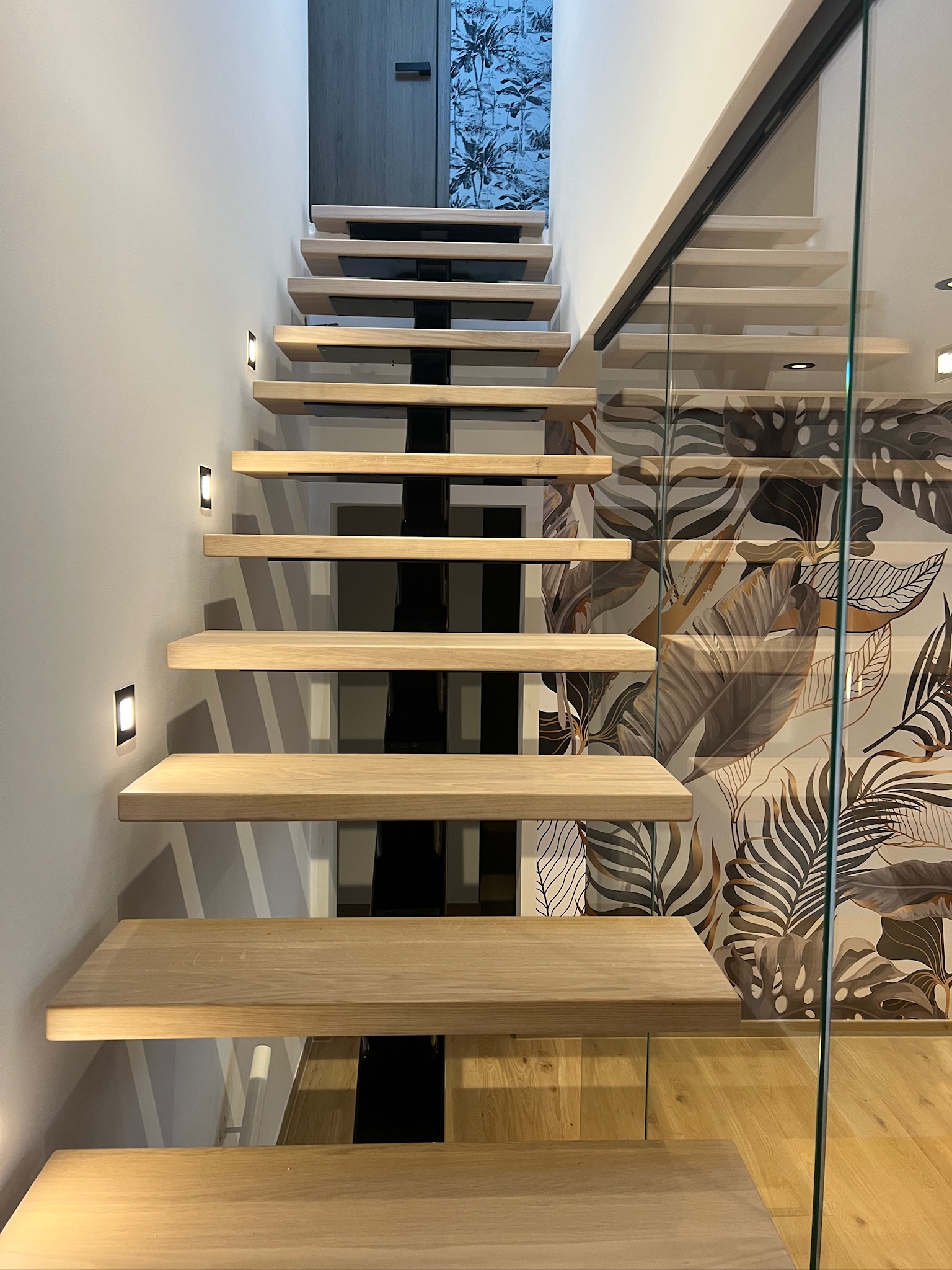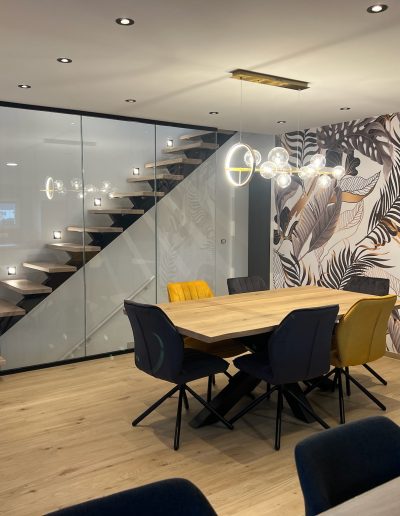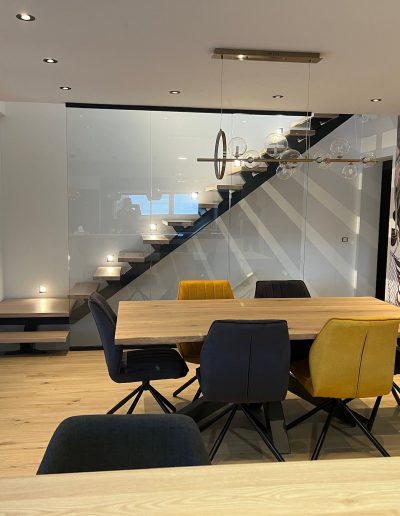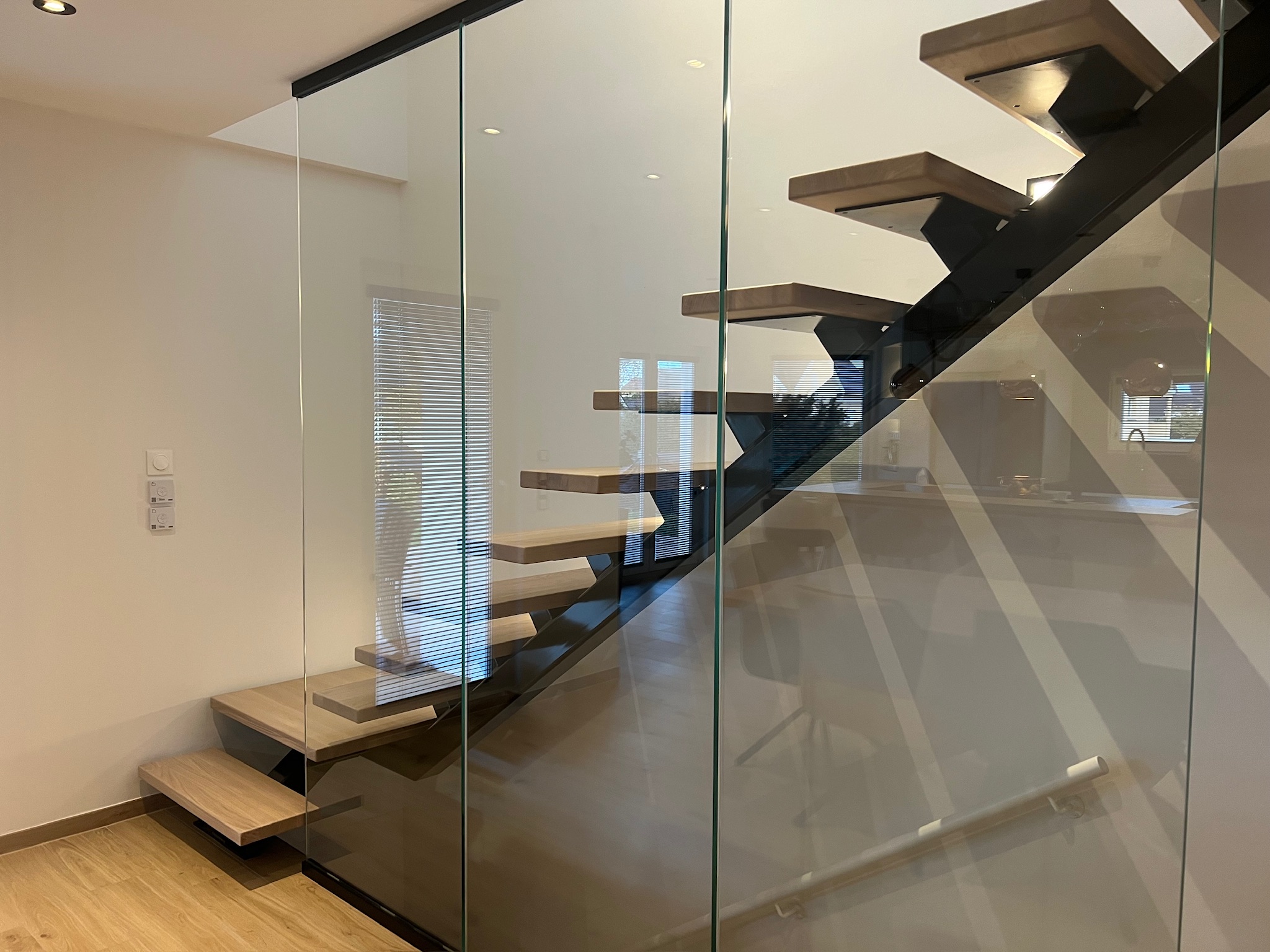 Force et Lumière à Sélestat : Escalier Limon Central Acier et Full Verre